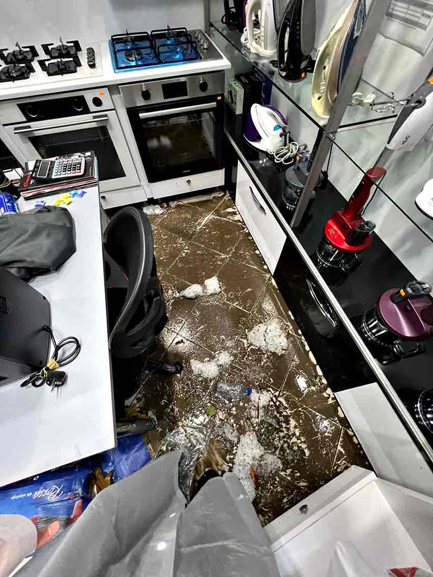 “Bu caddede yalnızca bir tane mazgal var ve o da tıkandığı için tüm bu felaketi yaşadık. Her şey 10 dakika içinde oldu. Tüm taban ürünlerimiz suya gömüldü. Yaklaşık 400 bin liralık zararımız var. Belediye dışında tüm devlet kurumları geldi. Belediyeye ulaşamadık, hâlâ kimseyle görüşemedik. Yine de canımıza bir şey gelmediğine şükrediyoruz.”