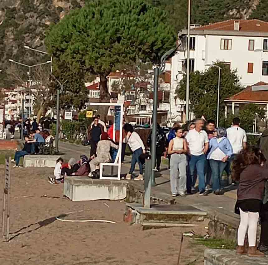 Bartın'ın en çok tercih edilen tatil yerlerden olan İnkumu, artan hava sıcaklığının ardından bugün ziyaretçilerle doldu. Sıcaklığın 28 dereceyi gördüğü şubat gününde park ve plajlar insan akınına uğradı. Kimisi sahil kenarındaki banklarda veya kafe ve restoranlarda otururken, kimisi sahil boyunca yürümenin, denizin ve güneşin tadını çıkardı. Denizi izlemek isteyenler ise, yanlarında getirdikleri sandalye ve masaları kumsala kurarak, günler sonra ailecek dışarı çıkmanın keyfini sürdü.