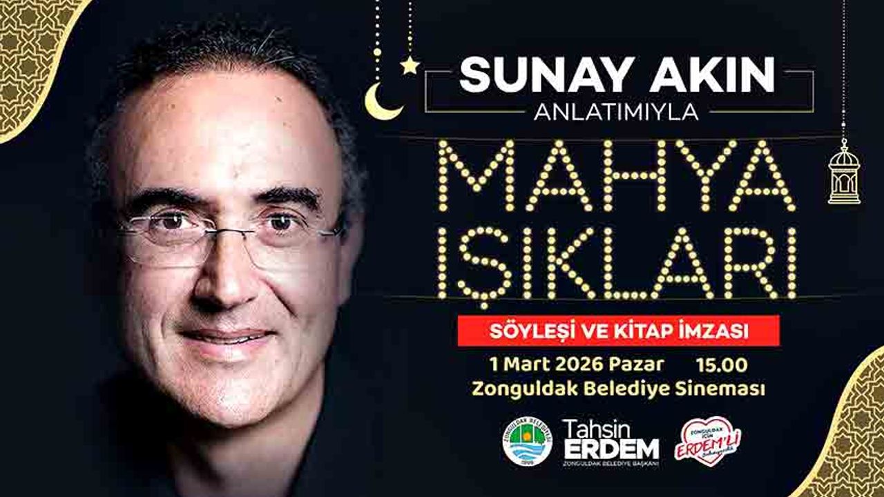 ‘Sunay Akın Anlatımıyla Mahya Işıkları’ başlıklı program, 1 Mart 2026 Pazar günü saat 15.00’te Zonguldak Belediye Sineması’nda gerçekleşecek. Etkinlikte hem söyleşi yapılacak hem de kitap imza fırsatı sunulacak.