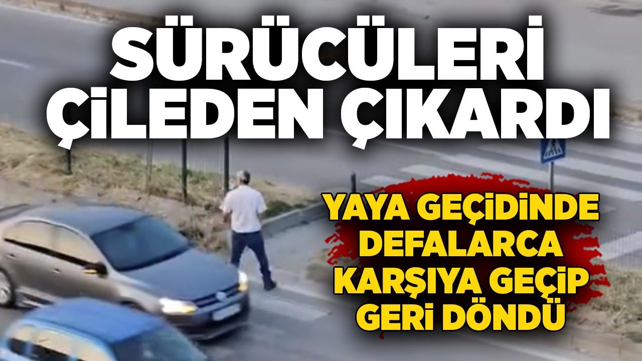 Bartın’da yoğun trafik akışının yaşandığı yolda, yaya geçidinden defalarca kez geçip geri dönen yayanın trafik güvenliğini tehlikeye düşürdüğü anlar, cep telefonuyla görüntülendi.