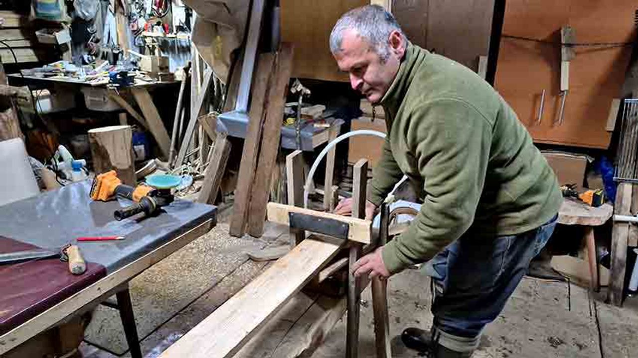 Düzce'de kamuda şoför olarak çalışan vatandaş, dedesinden ve babasından öğrendiği marangozluk becerisiyle yaptığı tahta kayaklara PVC boru ekleyerek geleneksel eğlenceye farklı bir boyut kazandırdı.