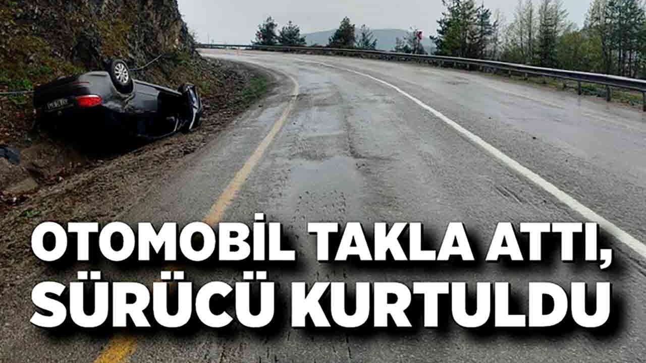 37 BC 975 plakalı Fiat marka otomobil, kontrolden çıkarak yol kenarında takla attı. Kazanın etkisiyle araç ters dönerken sürücü şans eseri yara almadan kurtuldu.