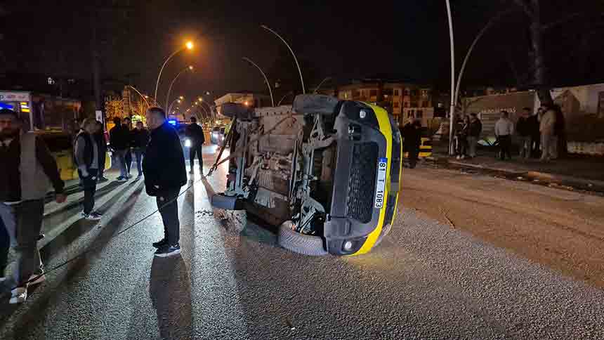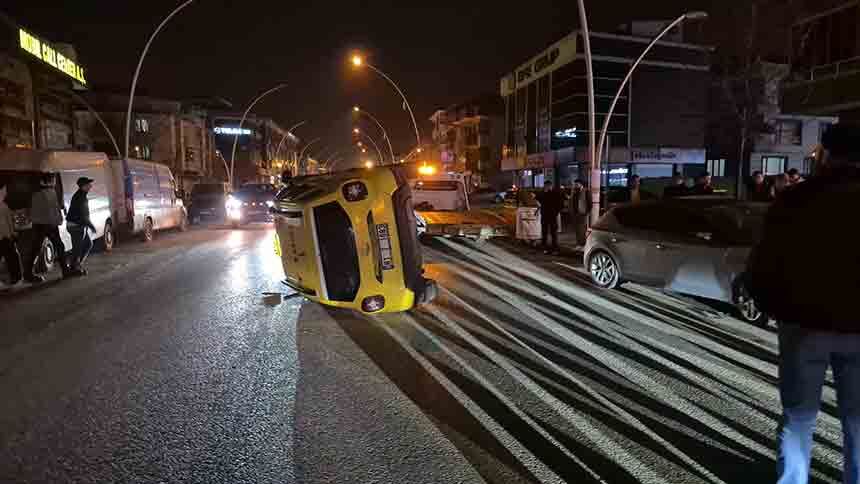 Kazada şans eseri yaralanan olmazken, araçlarda maddi hasar meydana geldi. Yan yatan ticari taksi, çekici yardımıyla bulunduğu yerden kaldırıldı.