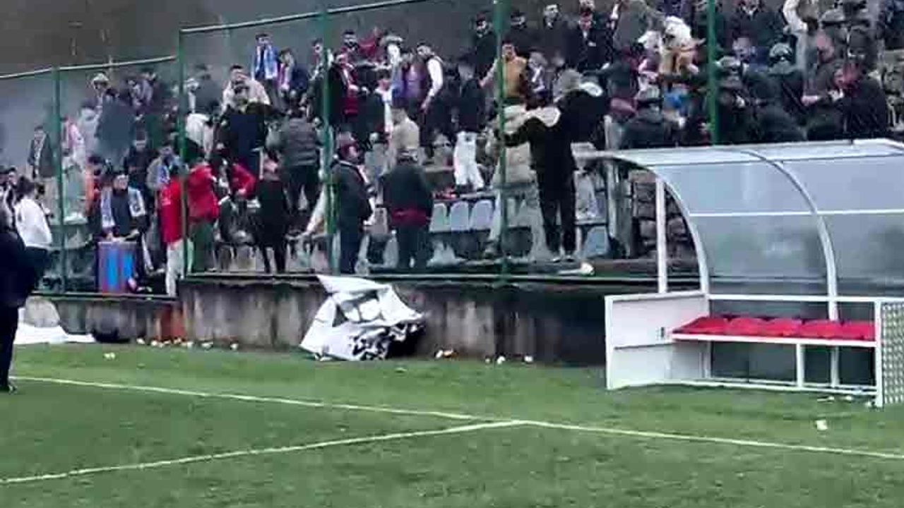 Karabük Amatör Lig'de oynanan Yortanspor - Eskipazar Belediyespor maçında deplasman takım taraftarları kırdıkları koltukları sahaya fırlattı.