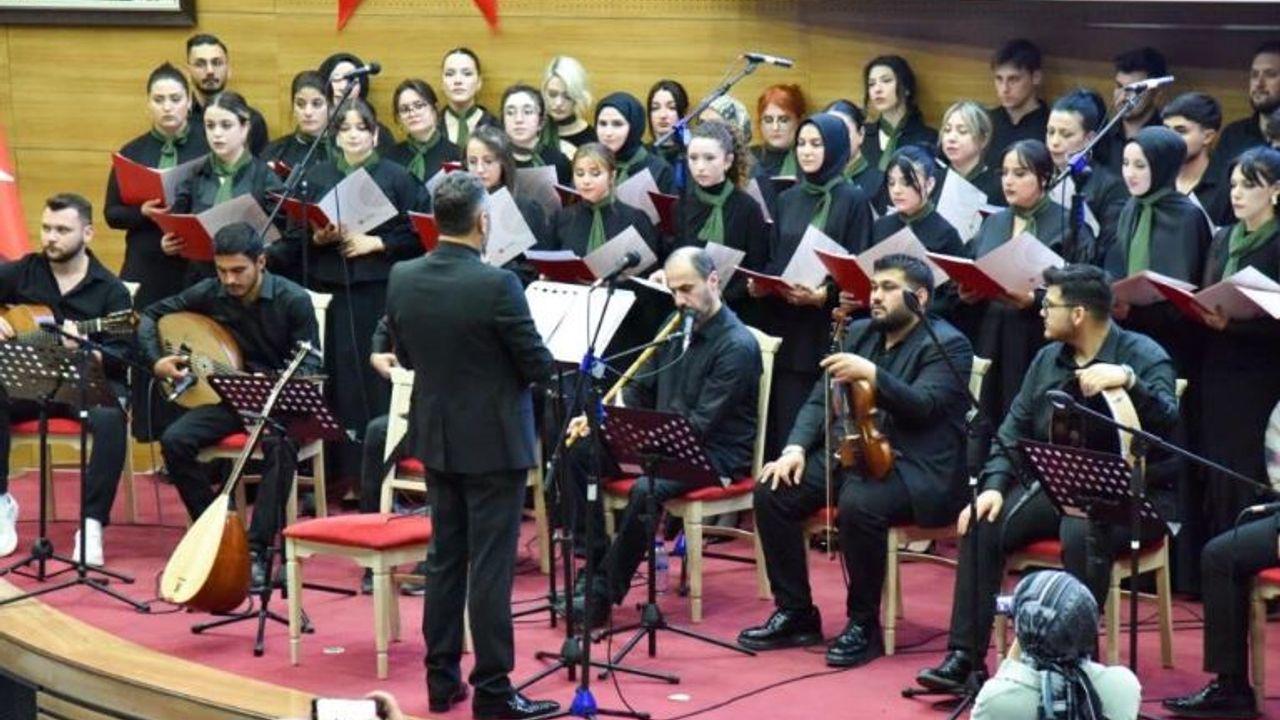 Merkez Kütüphane Sezai Karakoç Salonu’nda gerçekleştirilen konserde, Prof. Dr. Sıtkı Akarsu yönetiminde yaklaşık 40 öğrenci sahne aldı.