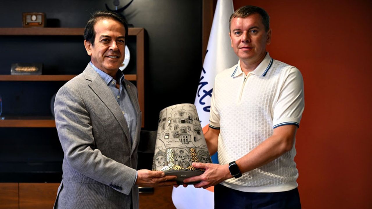Tataristan Cumhuriyeti Başbakan Yardımcısı ve Tarım-Gıda Bakanı Marat Ahmetov, Antalya Ticaret Borsası’nı (ATB) ziyaret etti. Ziyarette, Türkiye Odalar ve Borsalar Birliği (TOBB) Yönetim Kurulu Üyesi ve ATB Yönetim Kurulu Başkanı Ali Çandır ev sahipliği yaptı. Programa ATB Meclis Başkanı Erdoğan Ekinci, Yönetim Kurulu ve Meclis Üyeleri de katıldı.