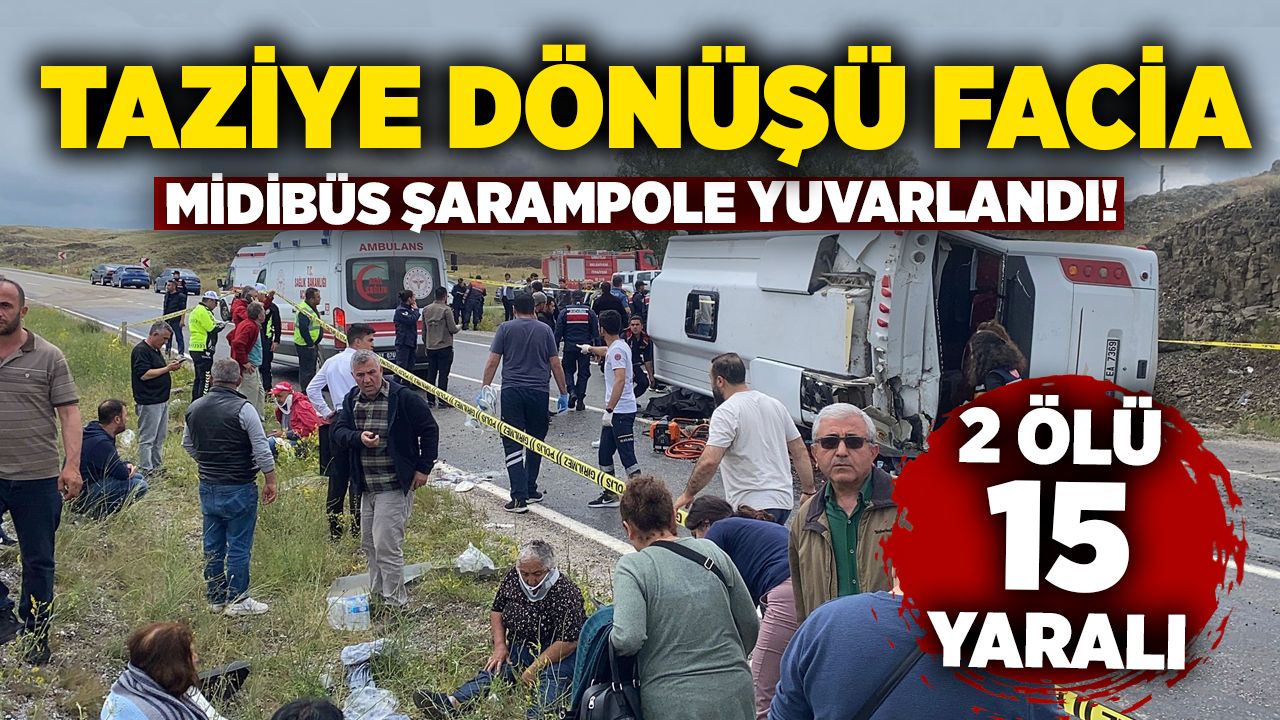 Taziye evinden dönenleri taşıyan midibüs Yozgat’ta şarampole yuvarlandı. Kazada ilk belirlemelere göre 2 kişi öldü, 15 kişi yaralandı.