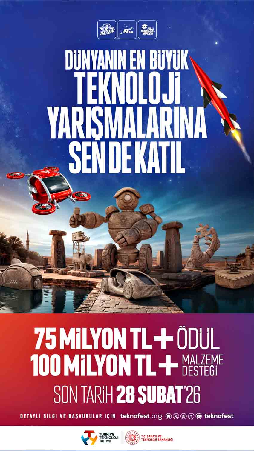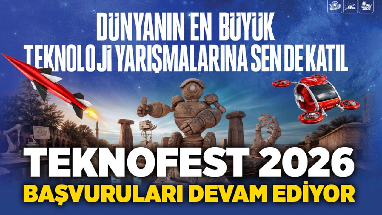 Dünyanın en büyük havacılık, uzay ve teknoloji festivali TEKNOFEST, 2026 yılında binlerce yıllık tarihi ve köklü medeniyet mirasıyla öne çıkan Şanlıurfa’da düzenlenecek. 30 Eylül - 4 Ekim tarihleri arasında GAP Havalimanı’nda gerçekleşecek TEKNOFEST 2026, bilimi ve teknolojiyi tarihin sıfır noktası Şanlıurfa’da milyonlarla buluşturacak. Her yıl yenilenen yarışma kategorileriyle dikkat çeken TEKNOFEST, dünyanın en büyük ödüllü teknoloji yarışmalarına bu yıl da ev sahipliği yapıyor. 2026 yılında 51 yarışma ve 132 alt kategoride düzenlenecek TEKNOFEST Teknoloji Yarışmaları için başvurular, 28 Şubat'a kadar devam ediyor.