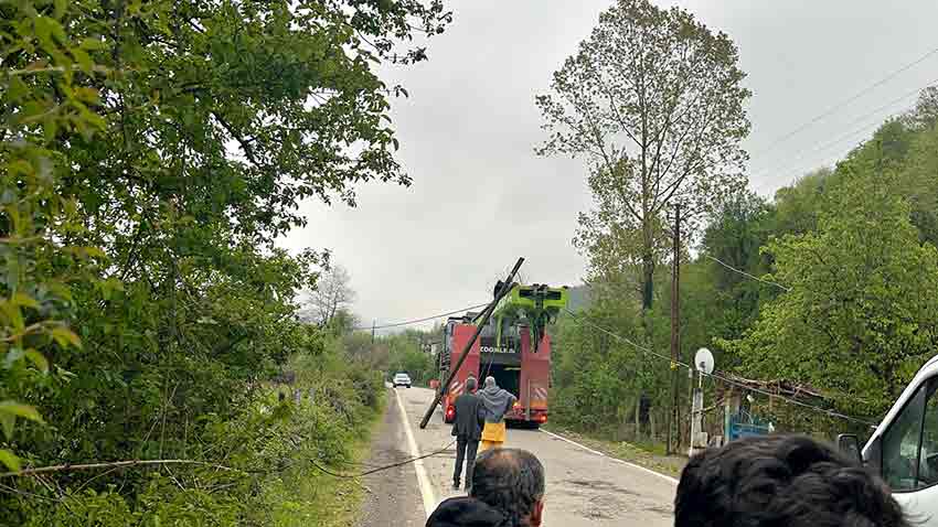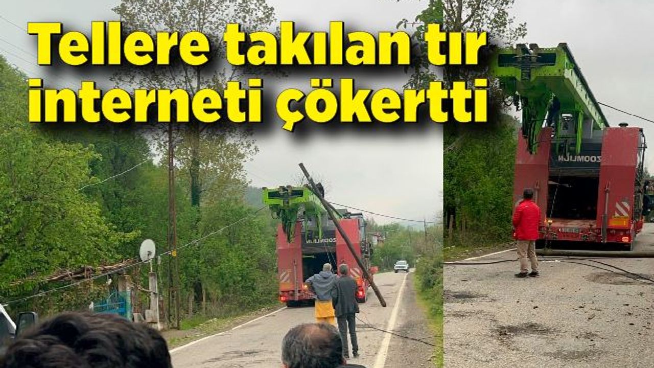 Bartın'ın Ulus ilçesine bağlı Kumluca beldesinde fore kazık makinesi taşıyan tır, yol kenarındaki tellere takıldı. Kopan teller nedeniyle internet giderken, kapanan yol nedeniyle trafik felç oldu.
