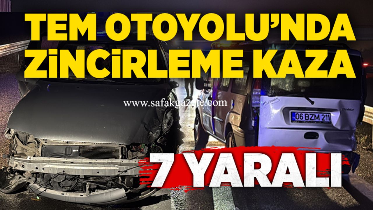 TEM Otoyolu’nun Bolu geçişinde 3 aracın karıştığı zincirleme trafik kazasında 7 kişi yaralandı. Otoyol jandarması tarafından yapılan çalışmalarda kazaya karışan araçların yoldan kaldırılması yaklaşık 2 saat sürerken bölgede uzun araç kuyrukları oluştu.