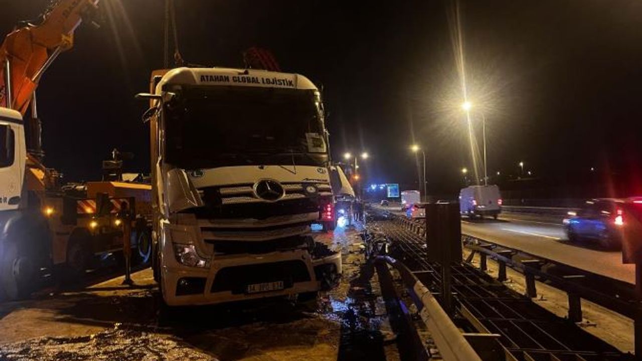 Kaza, TEM Otoyolu’nun Büyükçekmece mevkiinde saat 21.30 sıralarında meydana geldi. Çatalca’dan İstanbul yönüne seyir halinde olan M.O. idaresindeki 34 DPD 634 plakalı tır, kontrolden çıkarak bariyerlere çarptı.