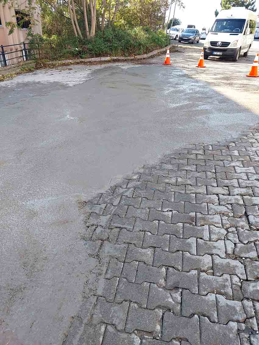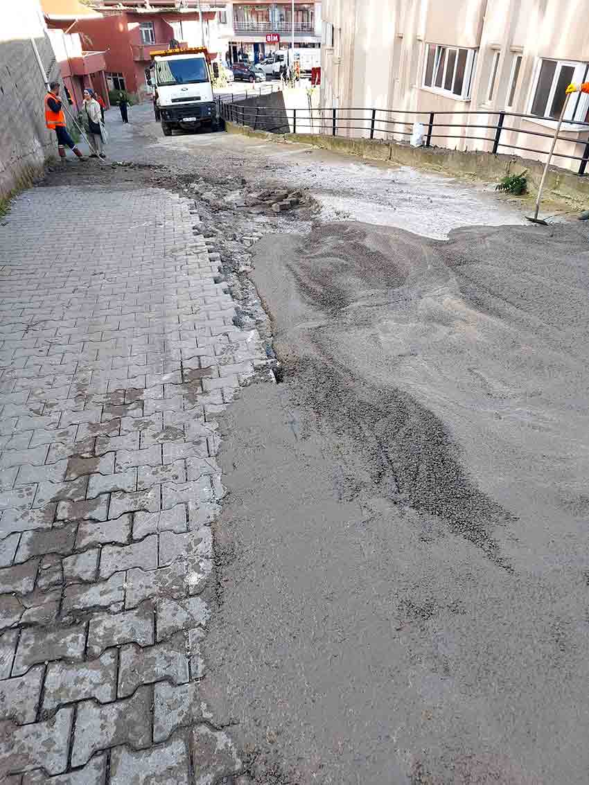 Belediye ekipleri, bozuk olan yolda önce zemin düzeltme çalışması gerçekleştirerek yolun alt yapısını sağlamlaştırdı. Ardından beton dökme ve betonlama çalışmaları yapılarak yol trafiğe uygun hâle getirildi.