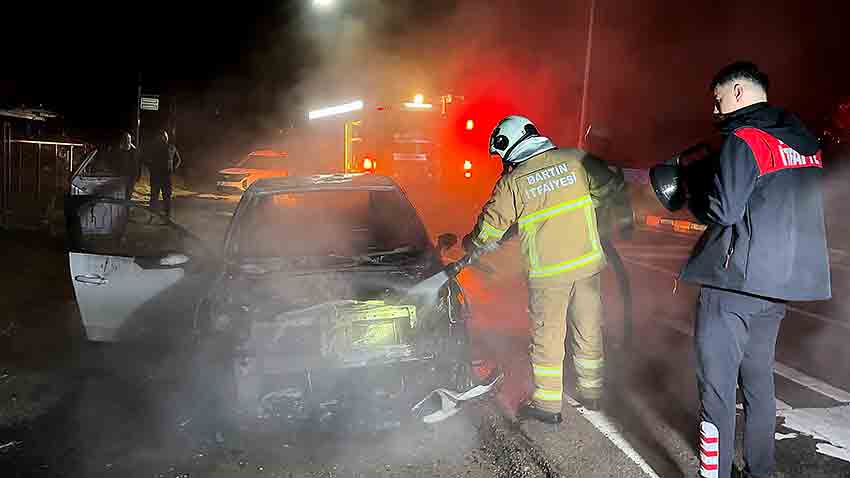 Bartın Şehirlerarası Otobüs Terminali önünde gece yarısı park halinde bulunan bir otomobilde yangın çıktı. Bartın–Zonguldak karayolu Terminal Kavşağı’nda meydana gelen olayda, 34 FGJ 666 plakalı araç bir anda alevlere teslim oldu.