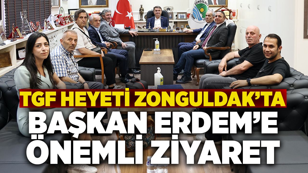 Türkiye Gazeteciler Federasyonu (TGF) Genel Başkanı Yılmaz Karaca, Genel Başkan Yardımcısı Levent Altın ve Zonguldak Gazeteciler Cemiyeti (ZGC) Başkanı Derya Akbıyık, Zonguldak Belediye Başkanı Tahsin Erdem’i makamında ziyaret etti. Ziyarette ZGC Yönetim Kurulu üyeleri de hazır bulundu. TGF Başkanı Karaca, ziyaretin anısına Başkan Erdem’e plaket takdim etti.