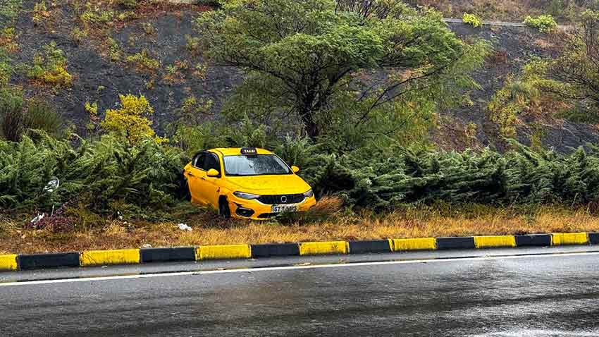 Zonguldak'ın Alaplı Plajlar mevkiinde direksiyon hakimiyetini kaybeden ticari taksi sürücüsü, orta refüjde bulunan aydınlatma direğine çarptı. Kazada sürücü yaralandı.