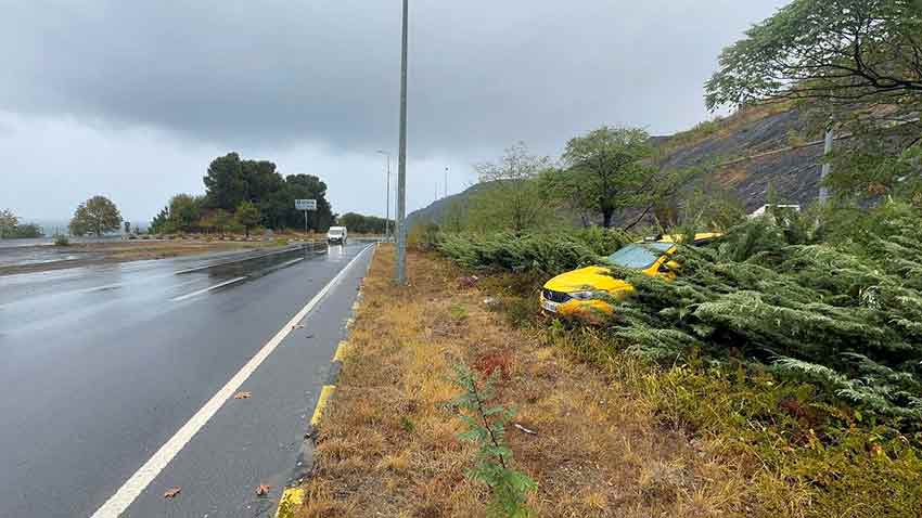 Kaza, saat 12.00 sıralarında Alaplı Plajlar mevkiinde meydana geldi. Edinilen bilgiye göre, Alaplı'dan Akçakoca istikametine seyir halindeki İsmail K.'nın kullandığı 67 T 5016 plakalı otomobil, kayganlaşan yolda sürücünün direksiyon hakimiyetini kaybetmesi nedeniyle yoldan çıkarak aydınlatma direğine çarptı. Çarpışmanın etkisi ile savrulan otomobil çalılara çarparak durabildi. Meydana gelen kazada, ticari takside yolcu olarak bulunan Selin A. yaralandı.