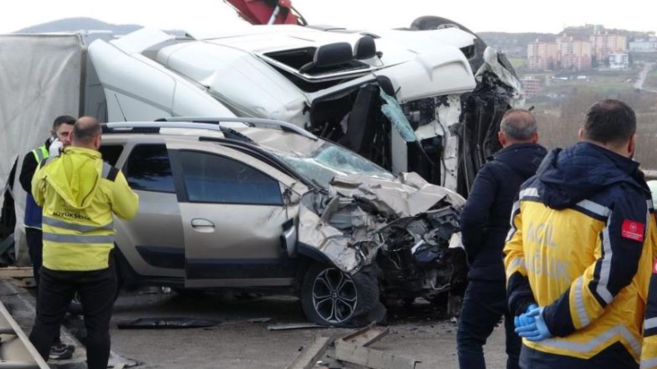 Karşı yönden gelen SUV tipi araç ile otomobile çarpan tır, büyük hasara yol açtı. Çarpmanın etkisiyle araçlarda bulunan 3 kişi yaralandı.
