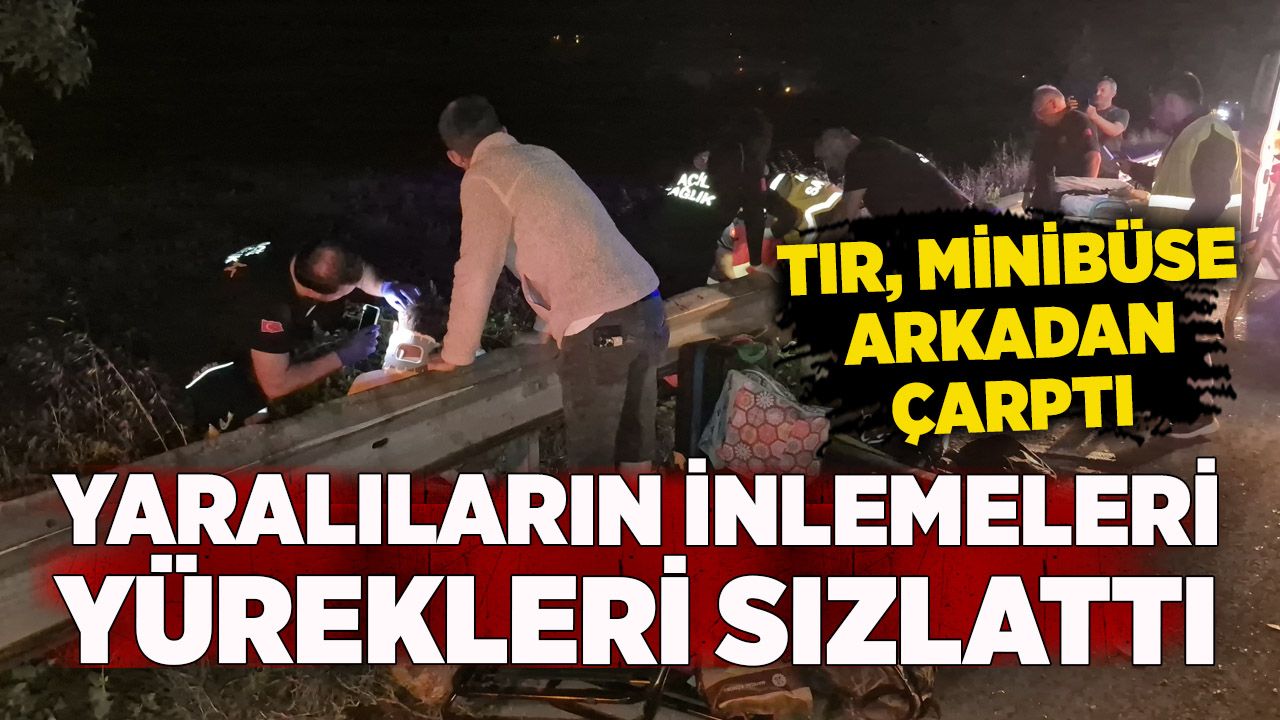 Anadolu Otoyolu Düzce kesiminde meydana gelen kazada, İstanbul’dan Ankara istikametine giden tır, aynı istikamette gitmekte olan minibüse arkadan çarptı. Kazada minibüste bulunan 7 kişi yaralandı. Çarpışmanın etkisiyle yolun kenarına savrulan yaralıların inlemeleri ise yürekleri sızlattı.