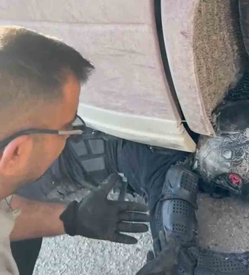 Ekiplerin çalışmasıyla sıkıştığı yerden çıkarılan sürücü hastaneye kaldırıldı. Sürücünün kaskı ve koruyucu kıyafetleri sayesinde kazayı hafif sıyrıklarla atlattığı öğrenildi. Olayla ilgili inceleme başlatıldı.