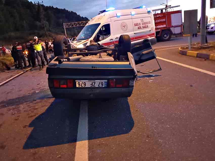 Kaza, akşam saatlerinde Akçakoca ile Alaplı arasındaki Ölüce mevkiinde yaşandı. Akçakoca’dan Alaplı yönüne giden 67 ZF 676 plakalı Tofaş marka otomobil, denetim için yol kenarında duran jandarma aracına arkadan çarptı. Çarpmanın etkisiyle otomobil sürüklenip takla attı.