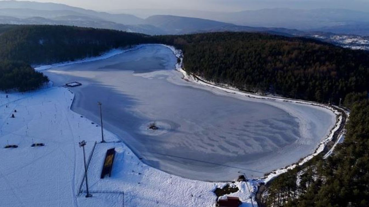 Kar yağışının ardından beyaza bürünen yayla ve buz tutan göletin oluşturduğu manzara, dron ile havadan görüntülendi.Yetkililer, bölgede soğuk havanın etkisini sürdürmesinin beklendiğini bildirdi.