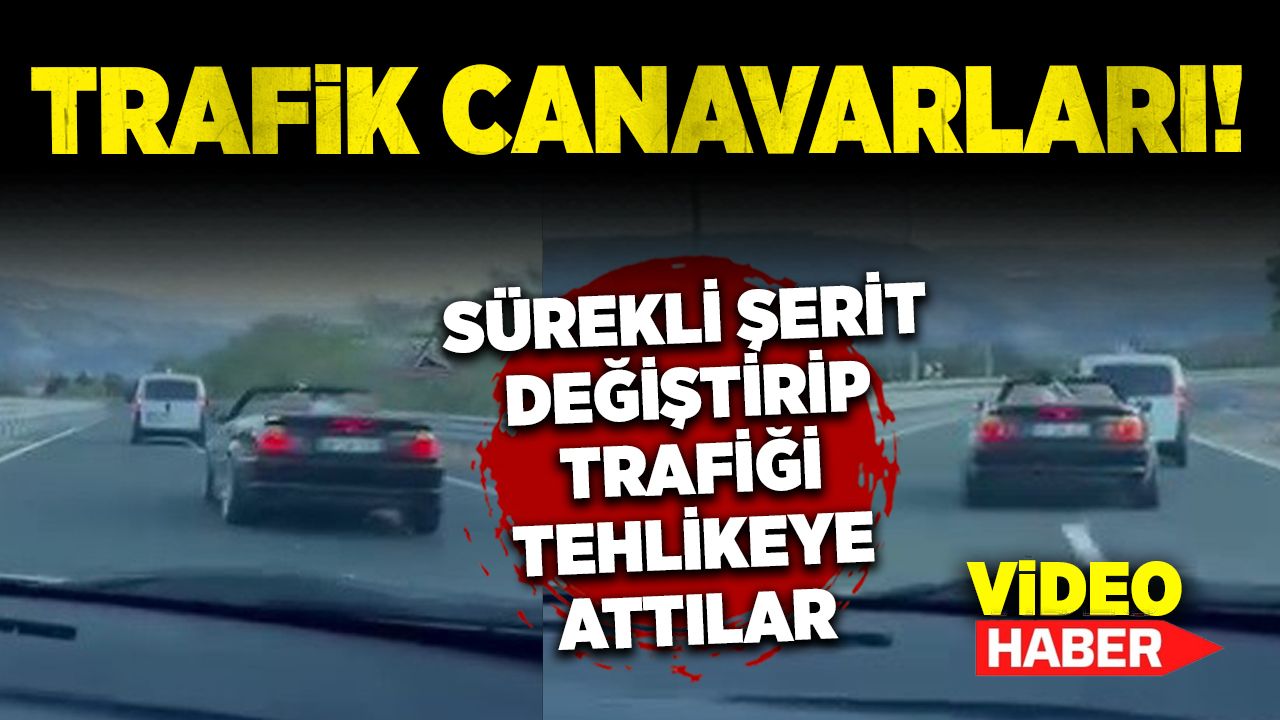 Cep telefonu kamerasıyla kaydedilen görüntülerde, araçların kısa süre içinde defalarca şerit değiştirdiği, diğer sürücülerin ise tehlikeli manevralardan dolayı ani fren yapmak zorunda kaldığı anlar yer aldı.
