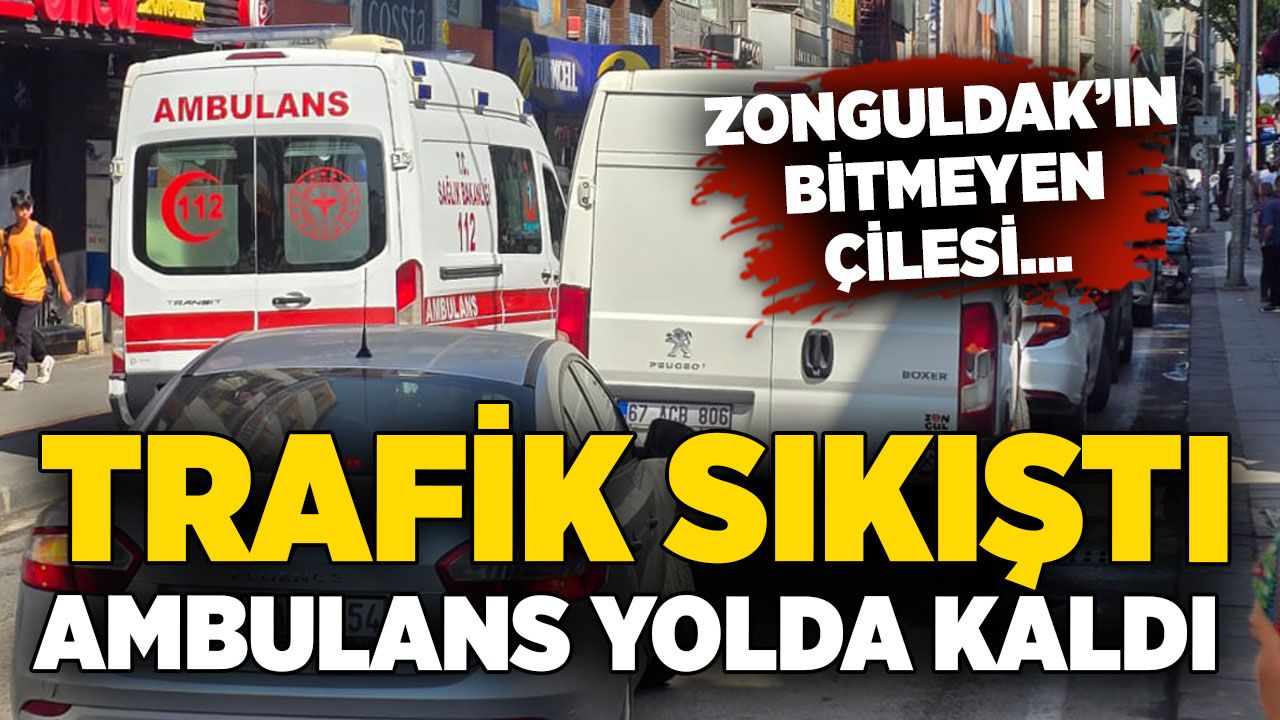 Zonguldak'ta mesainin başlaması ile birlikte kentte trafik sıkışıklığı yaşandı. Trafikte kalan ambulans dakikalarca trafikte bekledi.