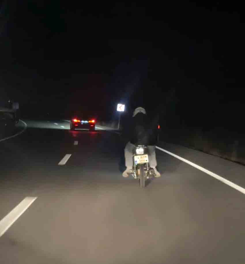 Bartın-Amasra yolunda seyir halinde bulunan ve sürücüsü bilinmeyen 74 ABK 308 plakalı motosikletin sürücüsü diğer sürücülere zor anlar yaşattı. Uzun süre trafikte seyir eden motosikleti gören sürücüler o anları cep telefonu kamerası ile kaydetti.