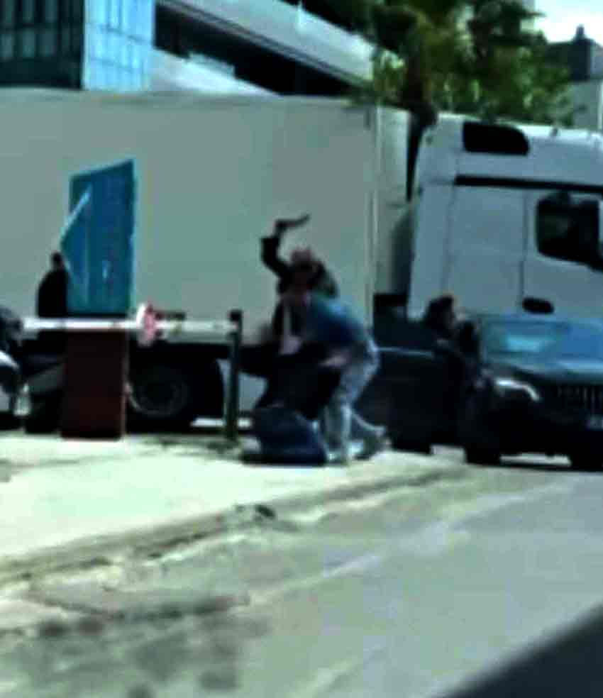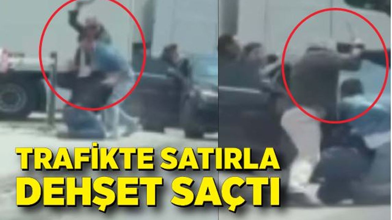 İzmir'de trafikte tartışan iki sürücülerden biri, diğerine satırla saldırıp yaraladı. O anlar, cep telefonuyla görüntülendi.