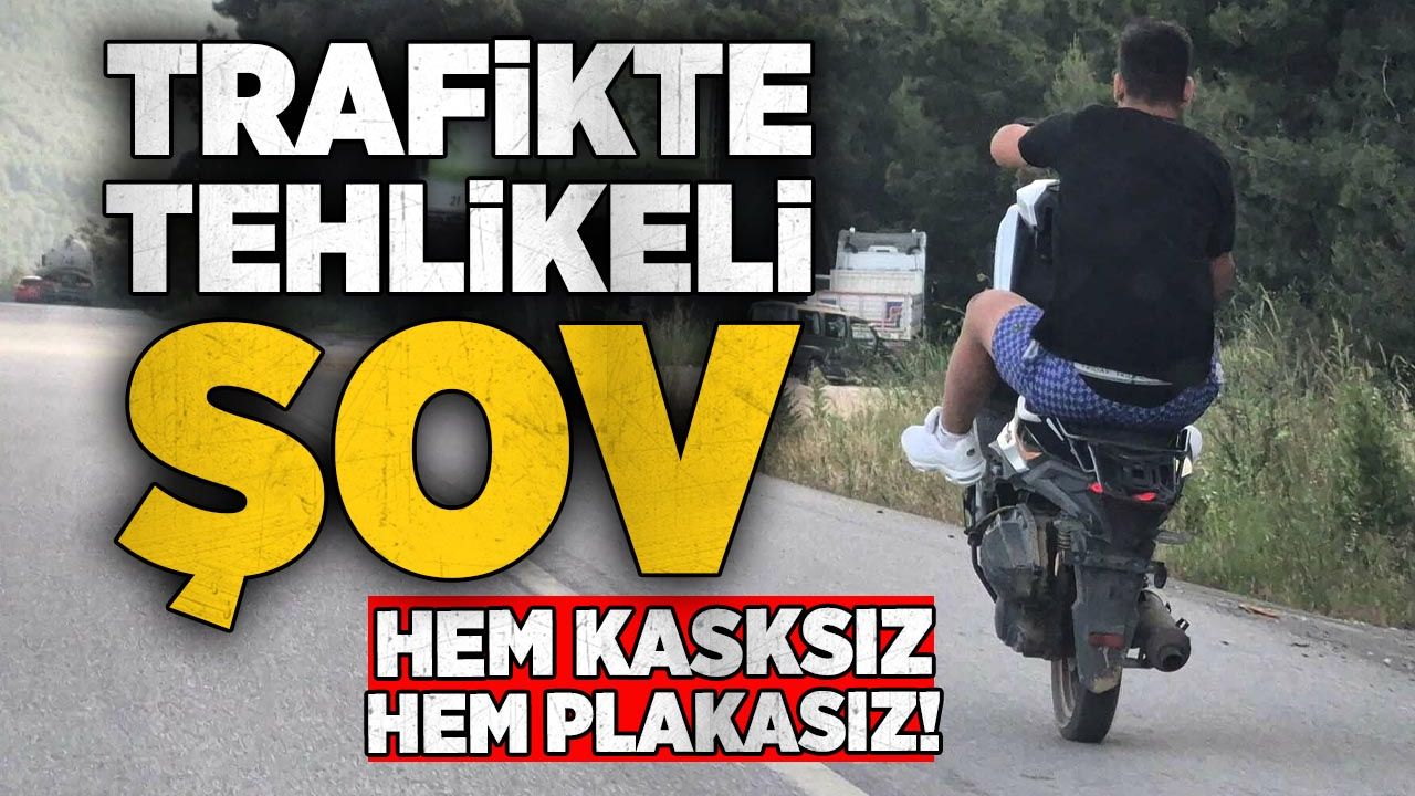 Olay, dün akşam saatlerinde Milas-Bodrum kara yolu Güvercinlik istikametinde meydana geldi. Emniyet şeridinde plakasız motosikletinin ön tekerini kaldırarak ilerleyen kasksız sürücü hem kendini hem de diğer araç sürücülerini tehlikeye attı. Sürücüsü yolda zigzag çizerek ilerlerken, o anlar aynı yöne giden otomobilin sürücüsü tarafından cep telefonuyla görüntülendi.