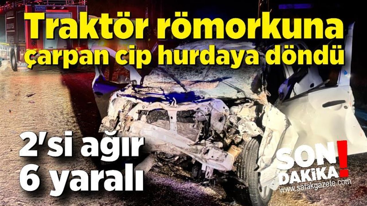 Çorum'un Sungurlu ilçesinde cipin traktörün römorkuna arkadan çarpması neticesinde meydana gelen trafik kazasında 2'si ağır 6 kişi yaralandı.