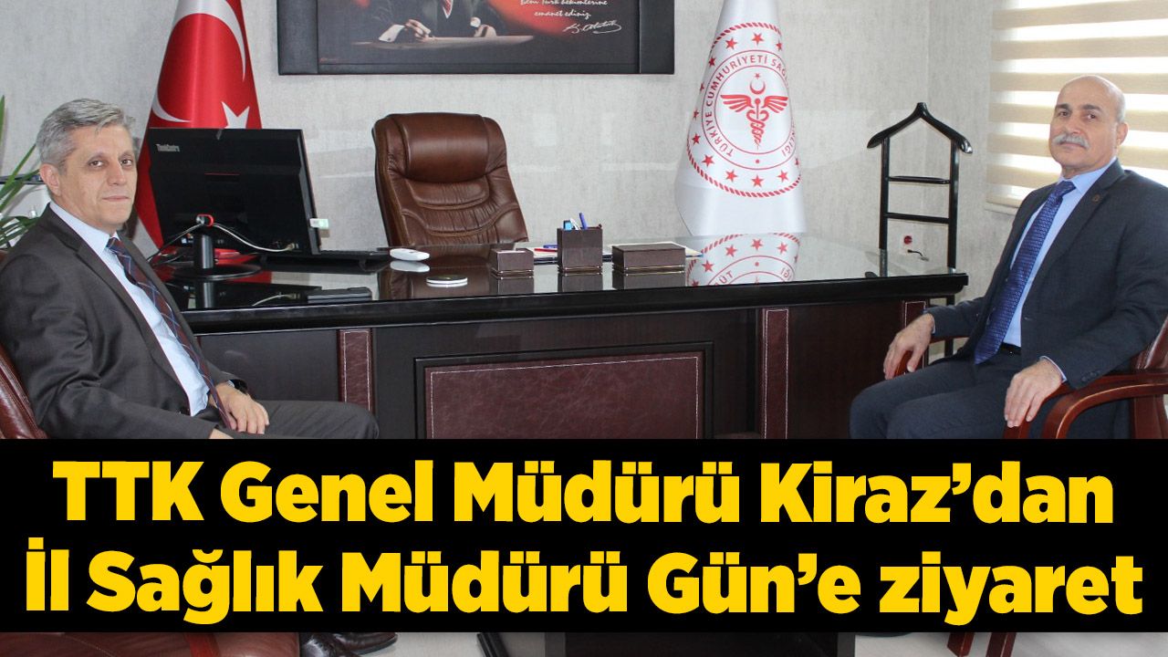 Türkiye Taşkömürü Kurumu (TTK) Genel Müdürü Muharrem Kiraz İl Sağlık Müdürü Uzm. Dr. Mustafa Özkan Gün’ü makamında ziyaret ederek yenin görevinin İlimize ve bölgemize hayırlı olması dileklerinde bulundu.