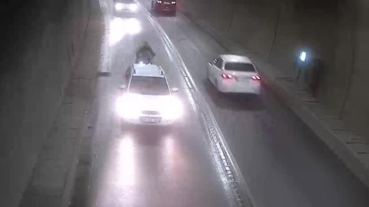 Edinilen bilgiye göre, Ferhat Tünelinde yaşanan kazada yolda bir anda duran otomobilin sürücüsü ikaz lambalarını yaktı. Ancak arkasından gelen motosikletin sürücüsü otomobile çarptı. Motosikletlinin yaralanmadan atlattığı kaza saniye saniye güvenlik kamerası tarafından kaydedildi.