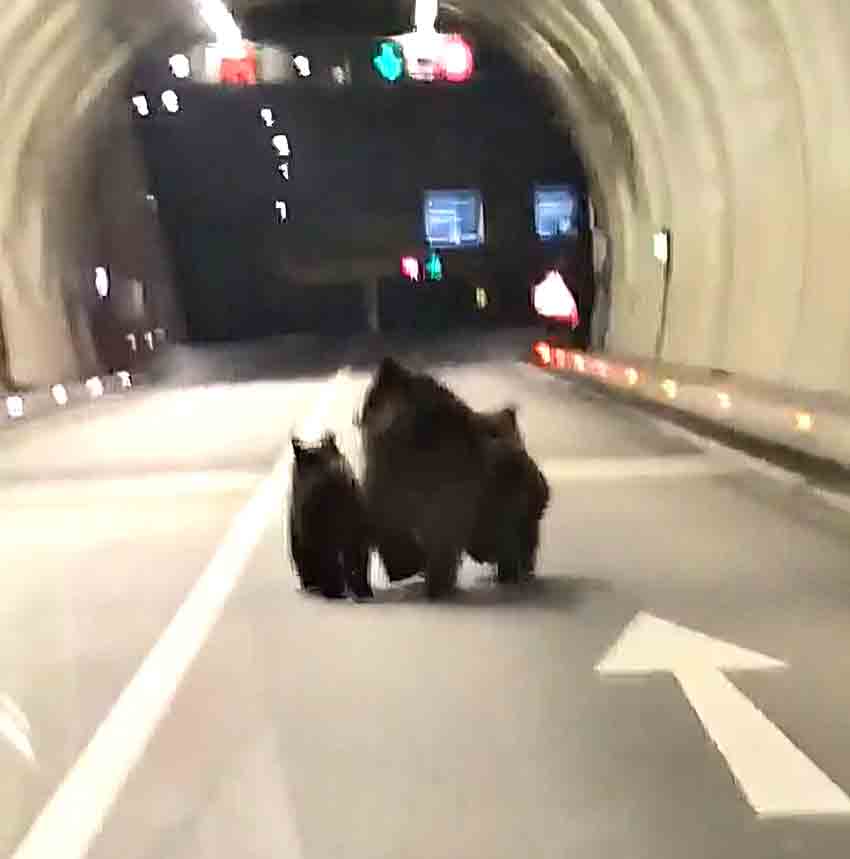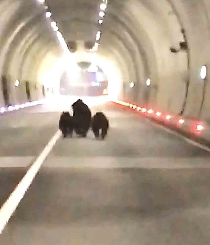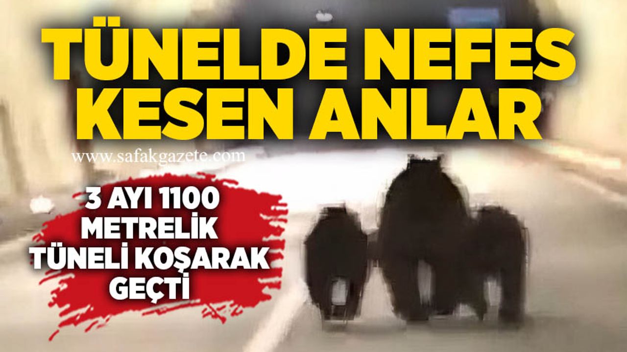 Aç kaldığı için şehre indikleri düşünülen ayılar ise 1100 metre uzunluktaki tüneli koşarak geçti. Görüntülerde, tünelin bir ucundan diğer ucuna kadar koşması nedeniyle yorulan ayıların durup arkasındaki araca bakmaları ve yollarına devam etmeleri de yer aldı.
