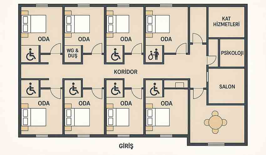 Proje kapsamında merkezde 10 yataklı, tam donanımlı bir Engelli Konuk Evi oluşturulacak. Bu alanda engelli bireylerin kısa süreli konaklayabileceği, geçici bakım hizmeti alabileceği ve güvenli bir ortamda vakit geçirebileceği belirtildi. Ayrıca gece destek sistemi, rehabilitasyon erişimi ve aile danışmanlığı gibi hizmetler de kesintisiz şekilde sunulacak. Odaların tamamen engelli bireylerin kullanımına uygun şekilde düzenleneceği, banyo, tuvalet, güvenlik ve sağlık altyapısının da buna göre hazırlandığı kaydedildi.