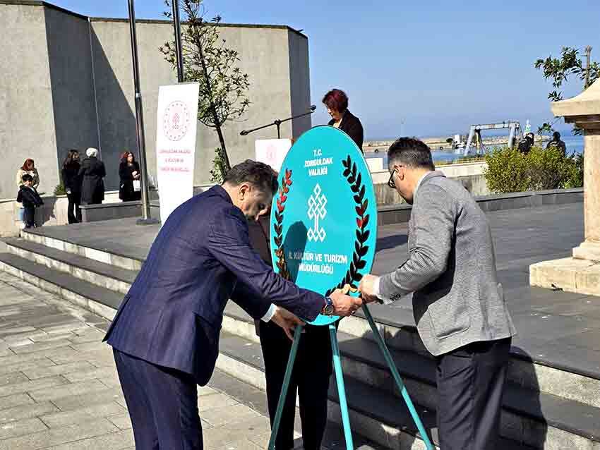 İl Kültür ve Turizm Müdürü Taner Dursun Atatürk anıtı'na çelin sunması ile başlayan programda saygı duruşu ve İstiklal marşı okundu.