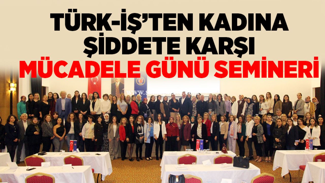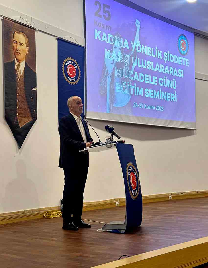 TÜRK-İŞ tarafından “25 Kasım Kadına Yönelik Şiddete Karşı Uluslararası Mücadele Günü” kapsamında gerçekleştirilen eğitim seminerine; TÜRK-İŞ Genel Başkanı Ergün Atalay, TÜRK-İŞ Genel Başkan Yardımcıları Eyüp Alemdar ve İrfan Kabaloğlu ile arasında Genel Maden İşçileri Sendikası (GMİS) Merkez Servisleri Şube Başkanı ve TÜRK-İŞ Zonguldak İl Temsilcisi Aysel Yaman Kocabaş’ın da bulunduğu TÜRK-İŞ’e bağlı sendikaların kadın yönetici ve uzmanları katıldı.