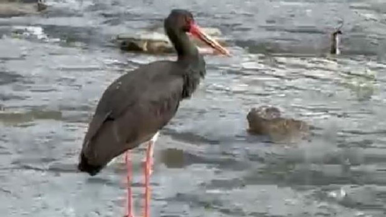 Merkeze bağlı Güney Köyünde gezintiye çıkan Veteriner Hekim Olcay Elieyioğlu, çay içerisinde kara leyleği fark etti.
