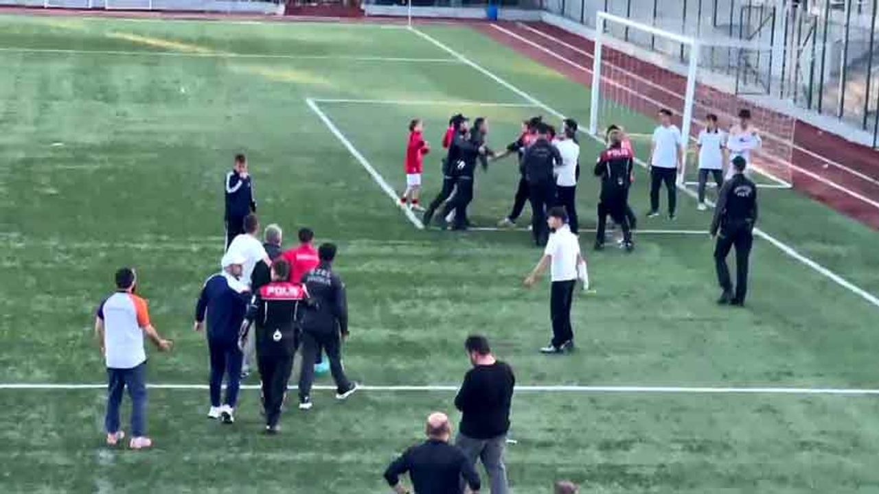 Karabük’te oynanan U-15 Futbol Ligi final maçında son dakika golü sonrası yaşanan gerginlik polis ekiplerince engellenirken, o anlar cep telefonu kamerası ile görüntülendi.