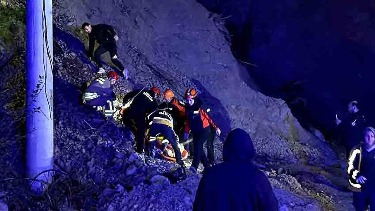 İhbar üzerine bölgeye itfaiye, sağlık ve arama kurtarma ekipleri sevk edildi. Ekipler zorlu arazi şartlarında çalışma başlattı