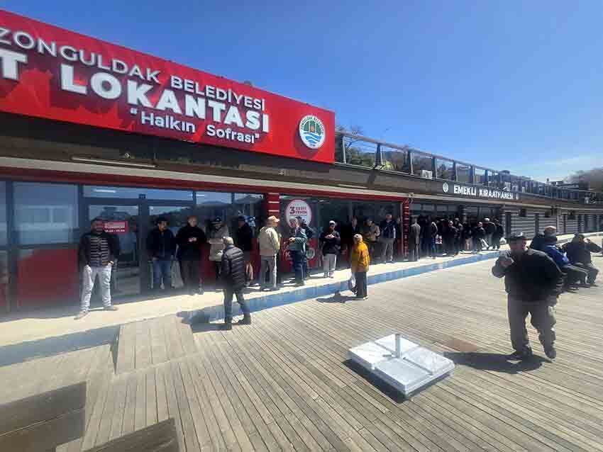 Zonguldak Belediye Başkanı Tahsin Erdem’in seçim projeleri arasında yer alan ve “Halkın Sofrası” sloganıyla hizmet veren Kent Lokantası, dar gelirli vatandaşların uğrak noktası olmaya devam ediyor. Saat 13.30’da başlayan yemek servisi öncesinde, rüzgârlı ve serin havaya rağmen vatandaşlar sıraya girerek yemek almayı bekledi.