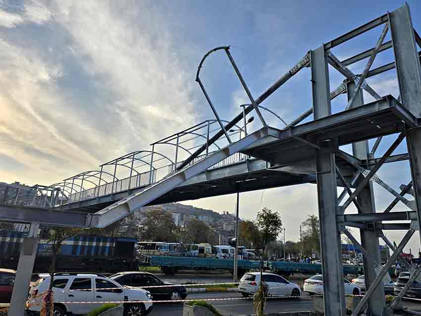 Zonguldak çevre yolunda, hem vatandaşların güvenliğini sağlamak hem de trafik akışını daha akıcı hale getirmek üzere yapımına başlanan üst geçit çalışmaları devam ediyor. Daha önce 3 kişinin hayatını kaybettiği noktada inşa edilen üst geçidin merdiven ve köprü bölümü tamamlanırken, köprü iskeletinin kaplama işlemleri ve korkuluk kaynak işleri yapılıyor. Uğur Mumcu kavşağında yapılan üst geçitte çalışmalar aralıkta sürerken. Asma durakları mevkiinde geçtiğimiz günlerde ayakları dikilen Üst geçitte ise henüz bir çalışma yapılmadı. 15 Kasım'da bitirilmesi hedeflenen çalışmalar aralıksız sürüyor.