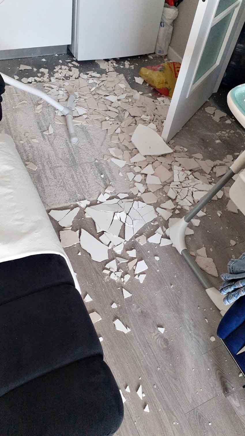 "Birden tavan bütün şekilde aşağı başıma düştü, çok kötü oldum"
