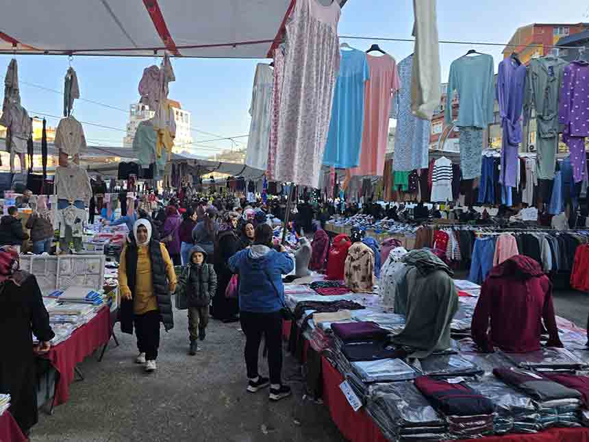 Zonguldak halk pazarında yaşanan hareketlilik esnafların yüzünü güldürdü. Kıyafetten züccaciyeye kadar birçok ürünün satışa sunulduğu pazarda, özellikle fiyatların uygun olması dar gelirli vatandaşların ilgisini artırdı. Sabahın erken saatlerinden itibaren pazara gelen vatandaşlar, ihtiyaç duydukları ürünleri tezgah tezgah gezerek seçti.
