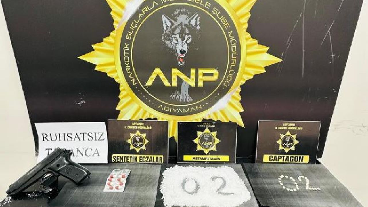 Polis ekiplerince yürütülen çalışmalar çerçevesinde E.Ö. isimli şahsın ikametinde ve eklentilerinde arama gerçekleştirildi. Yapılan aramalarda 124 gram metamfetamin, 30 adet Captagon hap, 8 adet 300 mg Gerica hap ile bir adet ruhsatsız tabanca ele geçirildi.