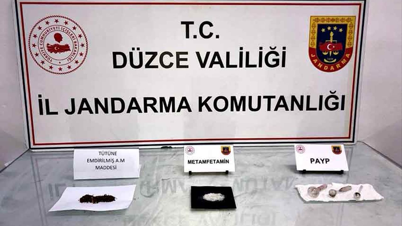 Düzce İl Jandarma Komutanlığı’na bağlı Çilimli İlçe Jandarma Komutanlığı ekipleri, Topçular Mahallesi'nde devriye görevi sırasında İstanbul plakalı bir aracı şüphelenerek durdurdu. Araçtaki şahısları aşağı indiren jandarma ekipleri şahısların üst aramalarını yaparken, N.G. isimli şahıs 3 adet uyuşturucu içmekte kullanılan aparat, 5 gram amfetamin maddesi emdirilmiş tütün ve 5 gram metanfetamin maddesini jandarma ekiplerine teslim etti. Olayla ilgili soruşturma başlatıldı.
