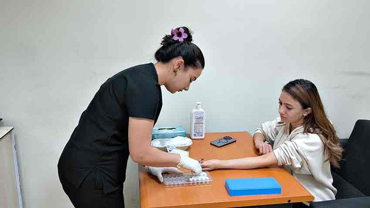 Bahar aylarında yeşil alanlara çıktığında burun akıntısı ve nefes darlığı gibi şikayetleri olan Demet Seloğlu (23) Kafkas Üniversitesi Göğüs Hastalıkları Anabilim Dalı’na müracaat etti. Dr. Öğr. Üyesi İhsan Topaloğlu, hastaya deri prick testi yaparak, antijeni saptamaya çalıştı.