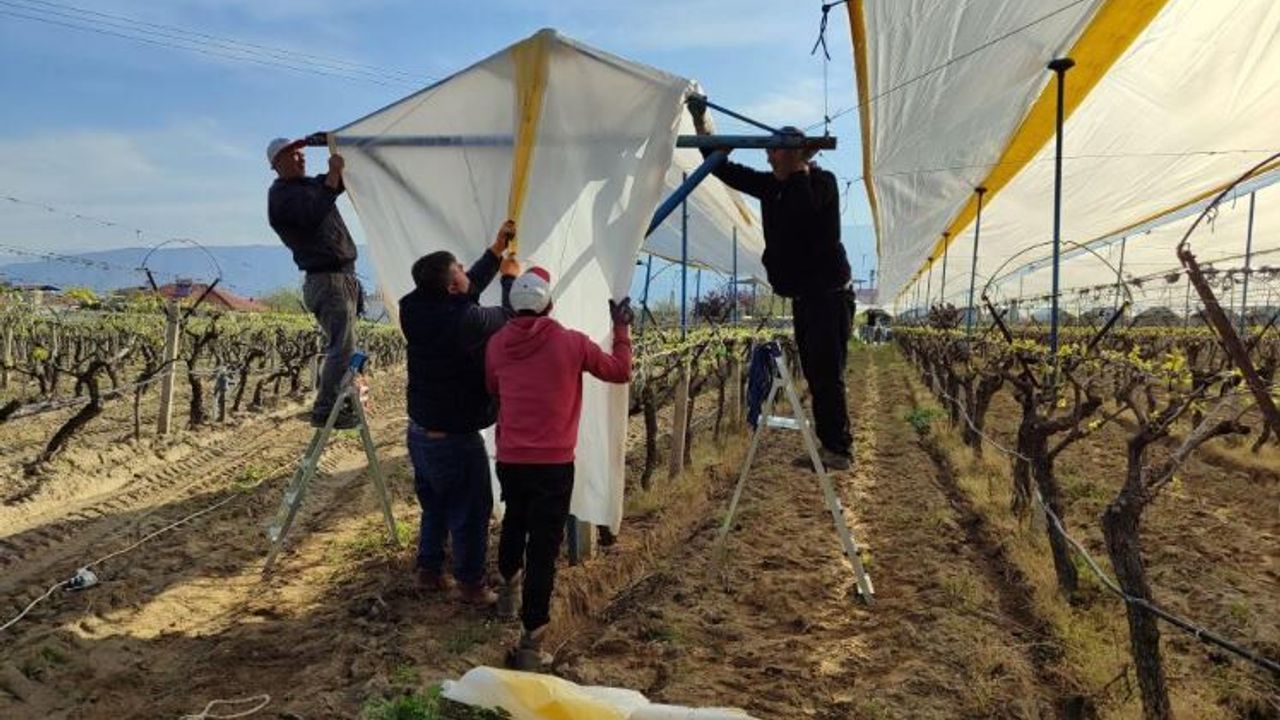 Üreticiler, bağlarını dolu, yağmur ve ani sıcaklık düşüşlerine karşı korumak amacıyla özel dolu tülleriyle kaplıyor. Her yıl uygulanan bu yöntemle ürün kaybının önüne geçilmesi hedefleniyor.