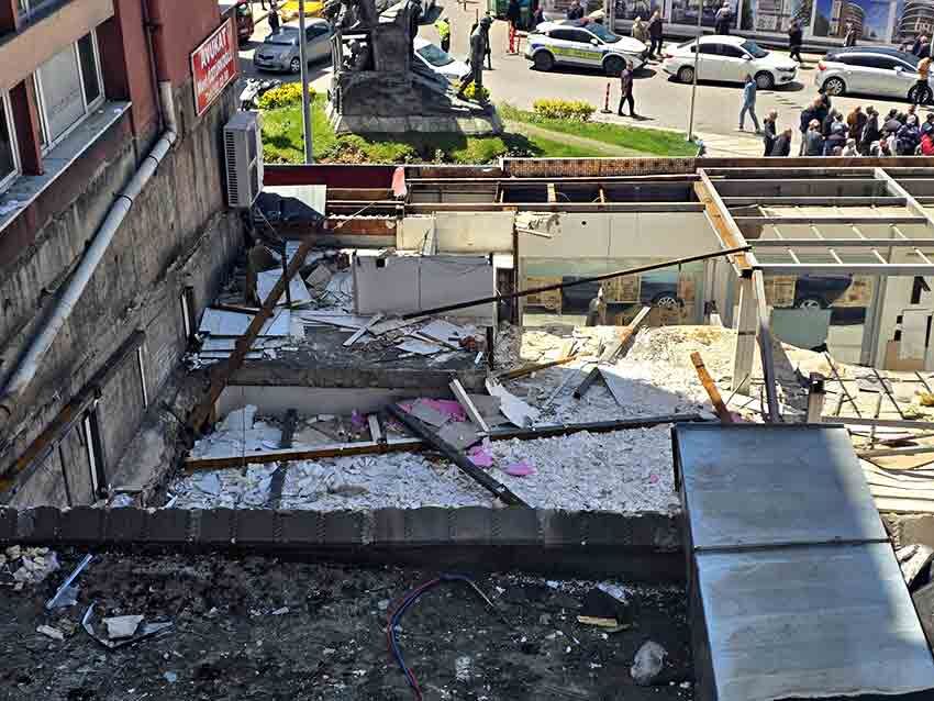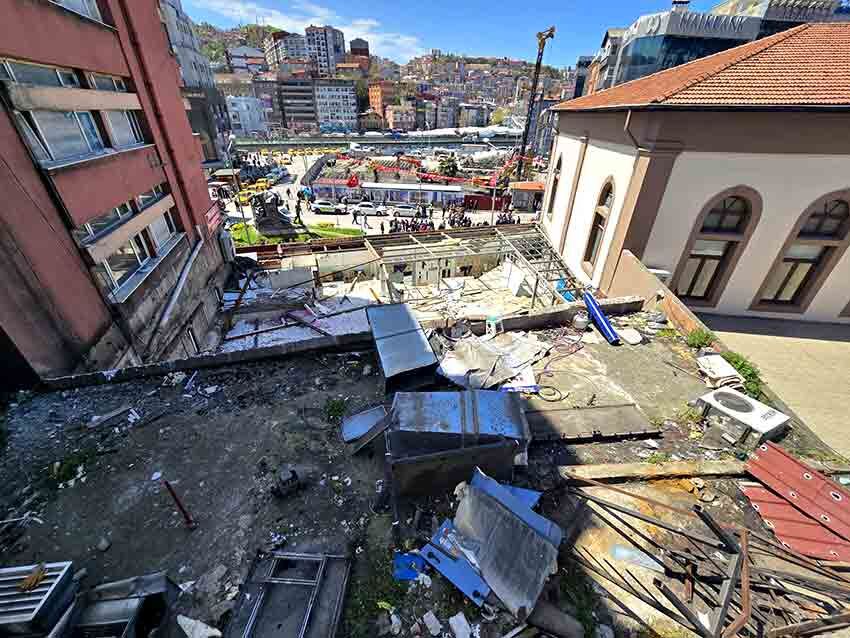 Zonguldak’ta yıl sonunda dayanıksız olduğu gerekçesiyle tahliye edilen Vakıflar İş Hanı’nda yıkım süreci öncesinde söküm çalışmaları başladı.