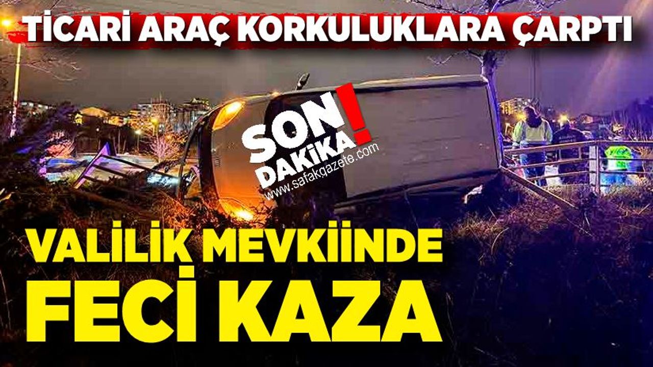 OTOMOBİL REFÜJE, TİCARİ ARAÇ KORKULUKLARA ÇARPTI
